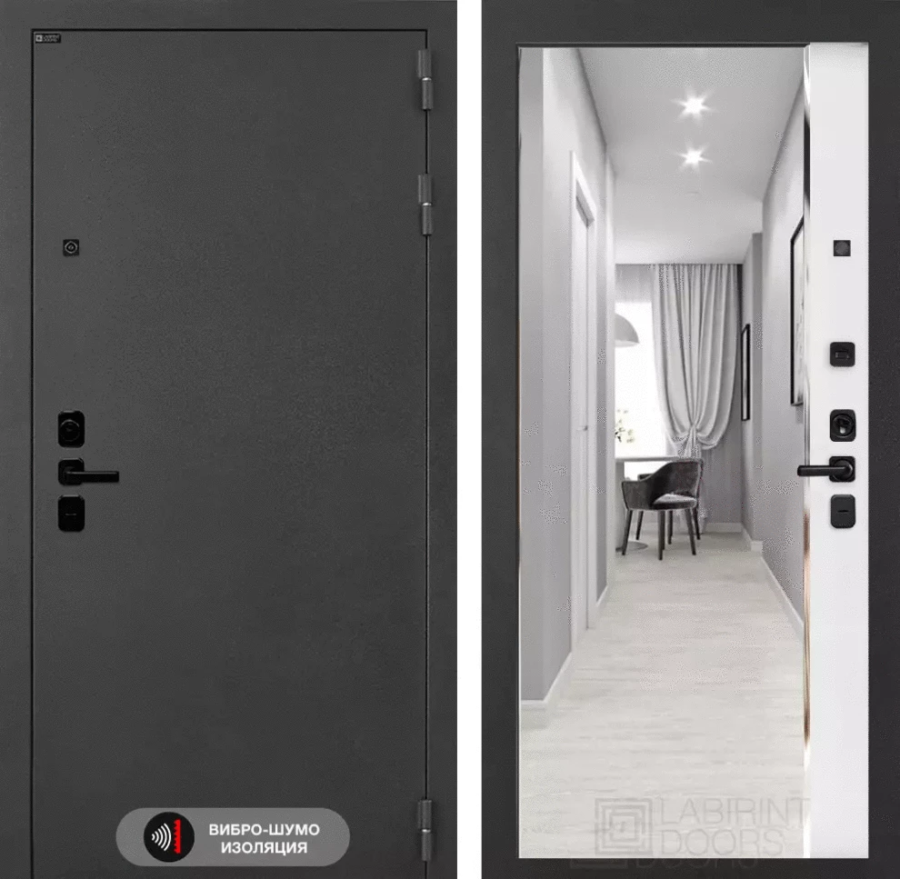 Входная дверь ACUSTICLAB с зеркалом Панорама - Белый софт