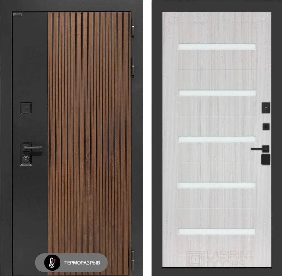- Черная фурнитура (полимерная): накладки сувальдные со шторкой, накладка под цилиндр, дверная ручка, ночная задвижка, металлический эксцентрик с защитной вставкой.