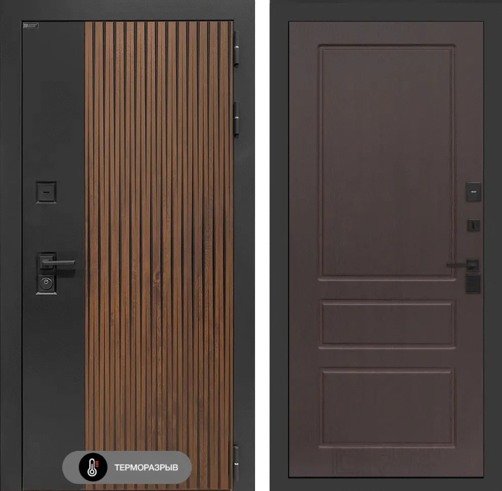 - Влагостойкая МДФ панель 12 мм комбинированная в цвете "Мэджик блэк силк" и "Орех грецкий" с патиной