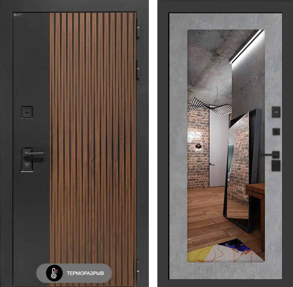 Входная дверь Айслаб с зеркалом 18 - Бетон светлый