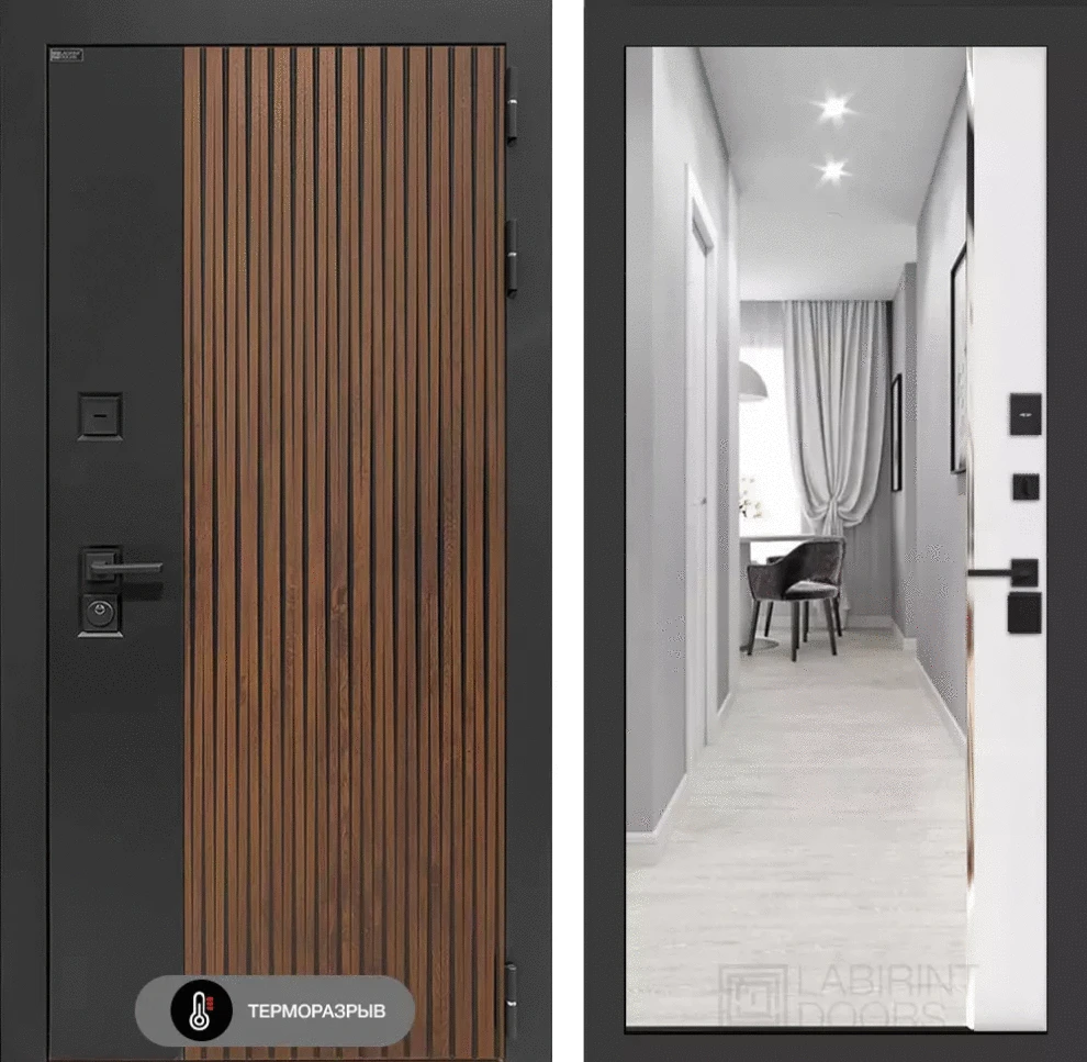 Входная дверь Айслаб с зеркалом Панорама - Белый софт