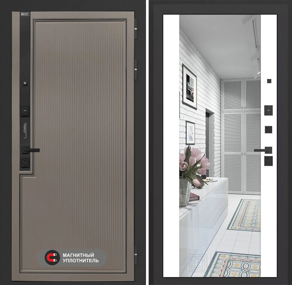 Входная дверь Лаб 1 Про с зеркалом Максимум - Белый софт