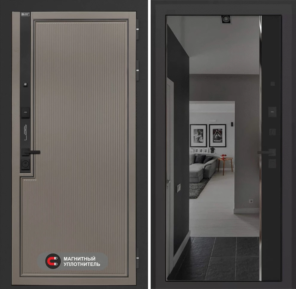 Входная дверь Лаб 1 Про с зеркалом (тонированное) Панорама - Черный кварц