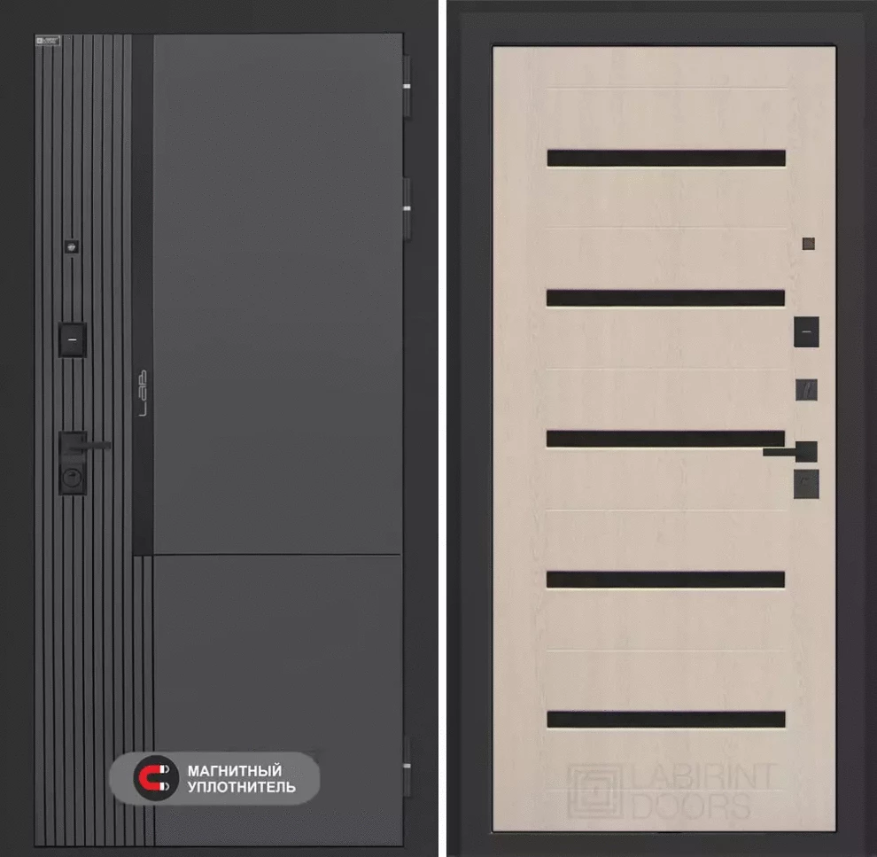 Входная дверь Лаб 2 Про 01 - Беленый дуб, стекло черное