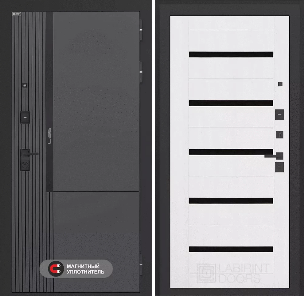 Входная дверь Лаб 2 Про 01 - Белое дерево, стекло черное