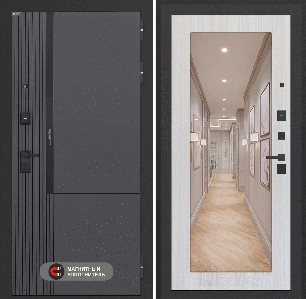 Входная дверь Лаб 2 Про с зеркалом 18 - Сандал белый