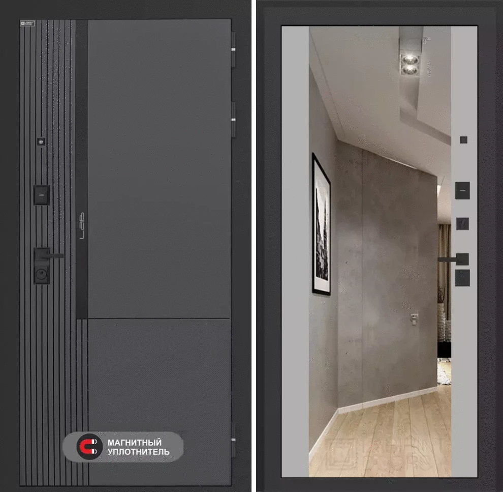 Входная дверь Лаб 2 Про с зеркалом Максимум - Грей софт