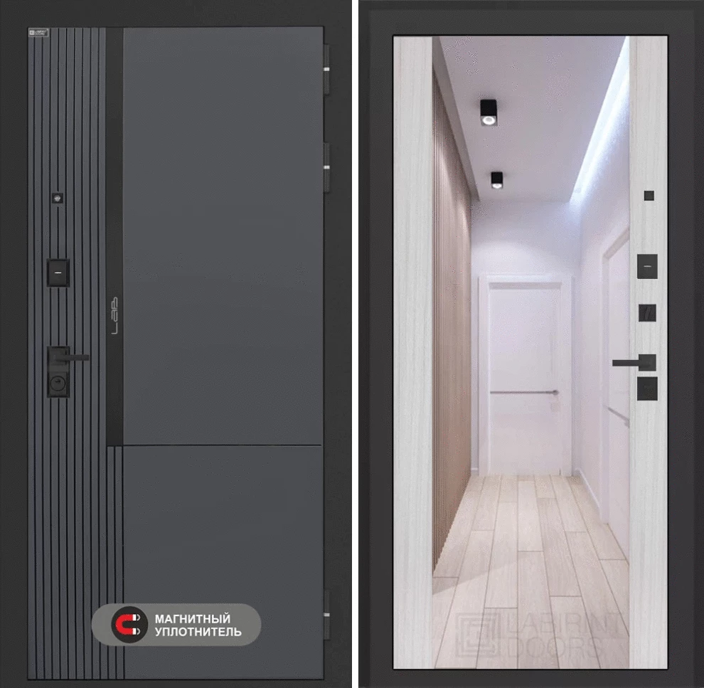 Входная дверь Лаб 2 Про с зеркалом Максимум - Сандал белый