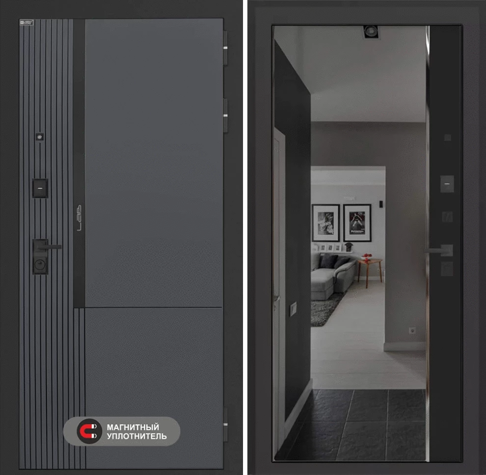 Входная дверь Лаб 2 Про с зеркалом (тонированное) Панорама - Черный кварц