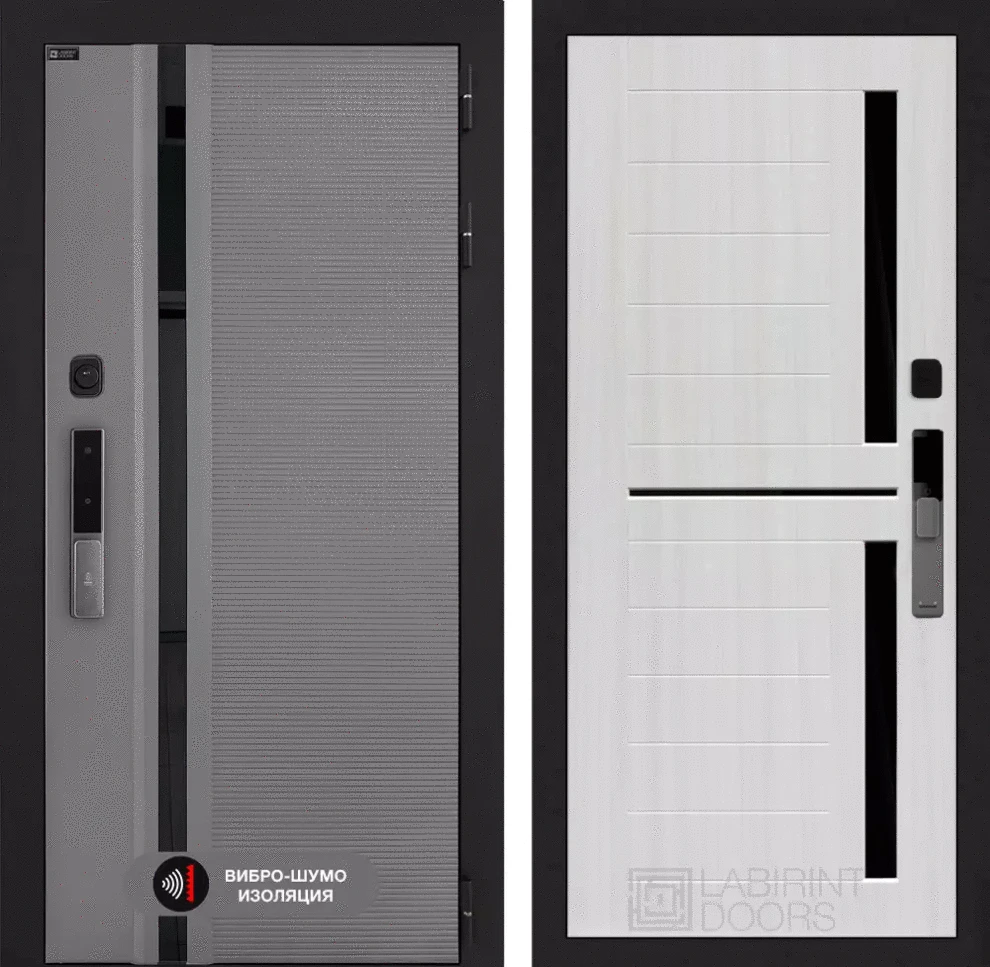 Входная дверь Пиано Смарт 2.0 панель 02 - Сандал белый, стекло черное