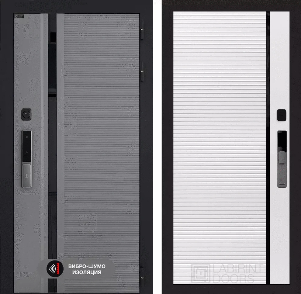 Входная дверь Пиано Смарт 2.0 панель 22 - Белый софт, черная вставка