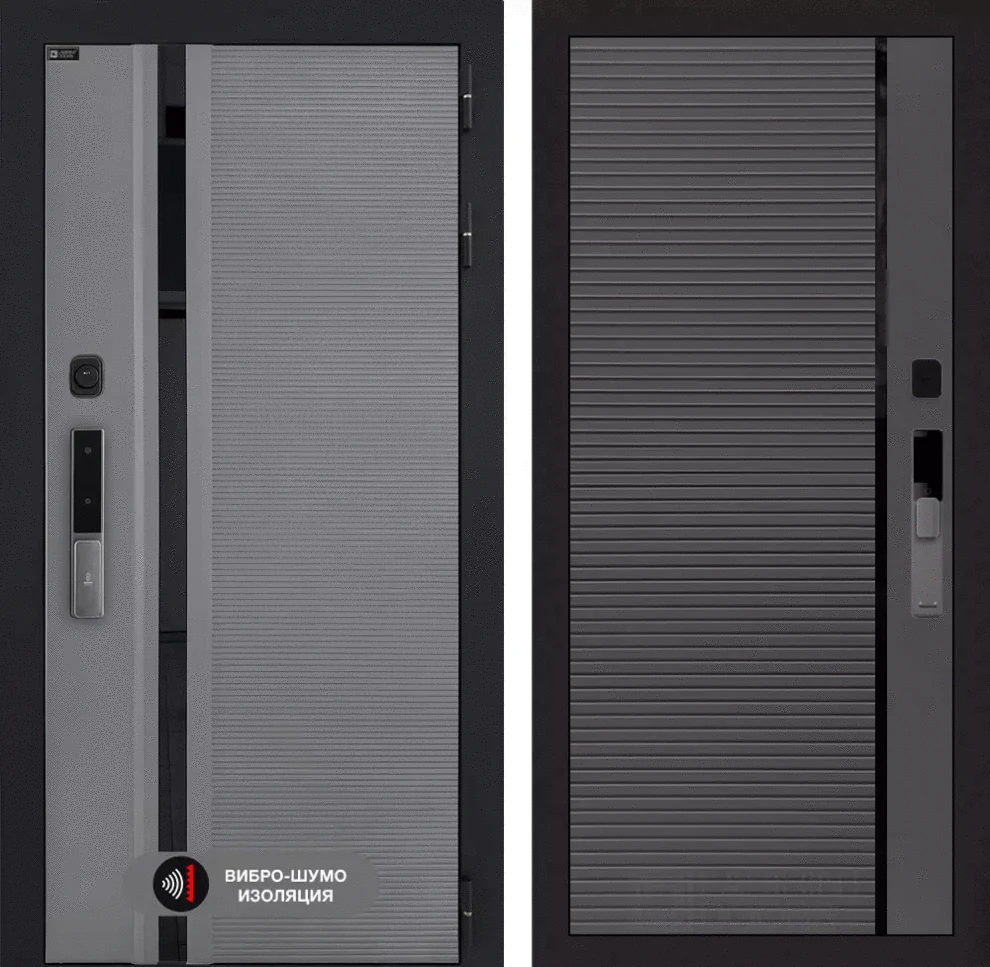 Входная дверь Пиано Смарт 2.0 панель 22 - Графит софт, черная вставка