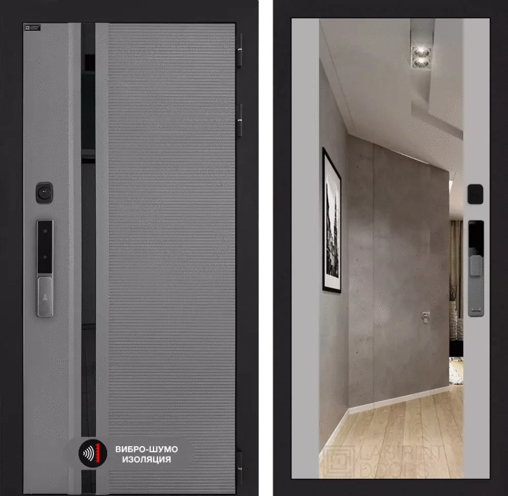 Входная дверь Пиано Смарт 2.0 с зеркалом Максимум - Грей софт