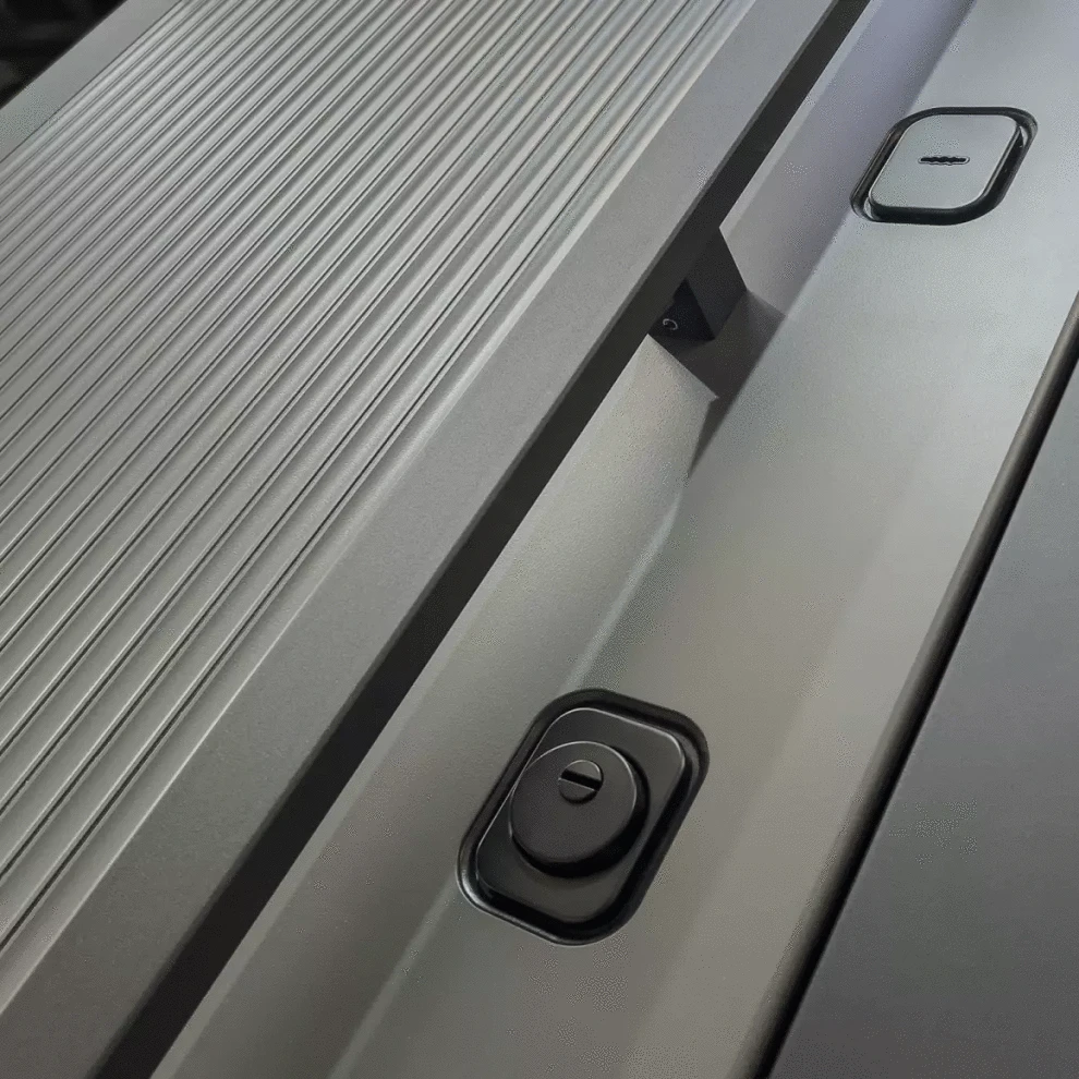 - Фурнитура в черном цвете: врезная броненакладка, сувальдные накладки, дверная ручка, ночная задвижка, регулируемый эксцентрик.