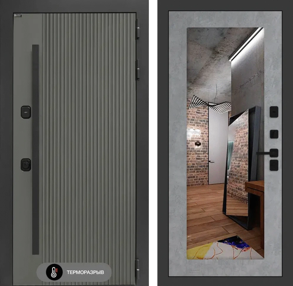 Входная дверь Термолаб 1 тепло с зеркалом 18 - Бетон светлый