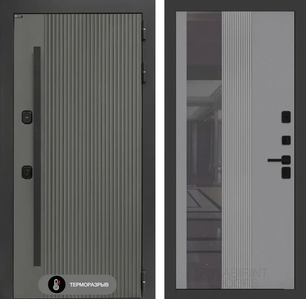 Входная дверь Термолаб 1 тепло с Зеркалом 32 тонированным - Серый рельеф софт