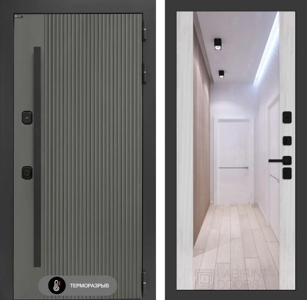 Входная дверь Термолаб 1 тепло с зеркалом Максимум - Сандал белый